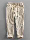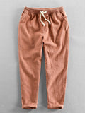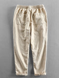 - Cropped linen-blend pants with drawstring and cuffed hem