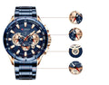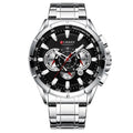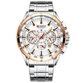 - Cronógrafo Completo: Medição precisa de tempo com funções de segundos, minutos e horas.