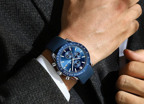 O Horizon Pro é cuidadosamente projetado com materiais de alta qualidade, incluindo uma caixa de aço inoxidável resistente e uma pulseira ajustável para maior conforto. O vidro Hardlex protege o mostrador contra arranhões, garantindo durabilidade e clareza. Com ponteiros luminosos e um cronógrafo completo, este relógio oferece precisão e estilo para o homem moderno.