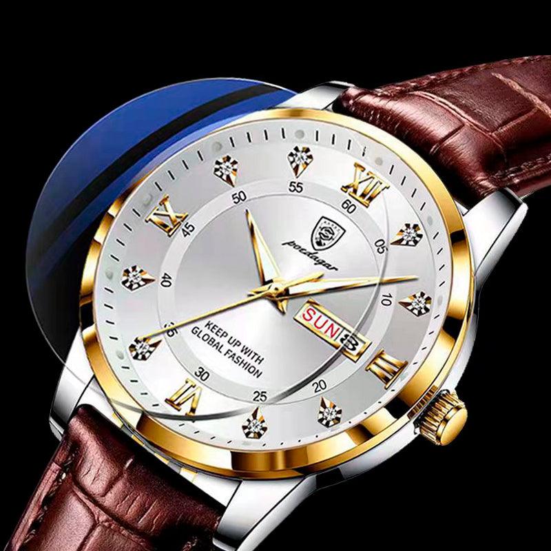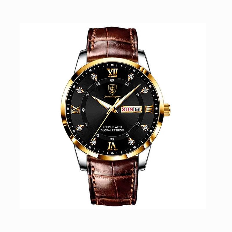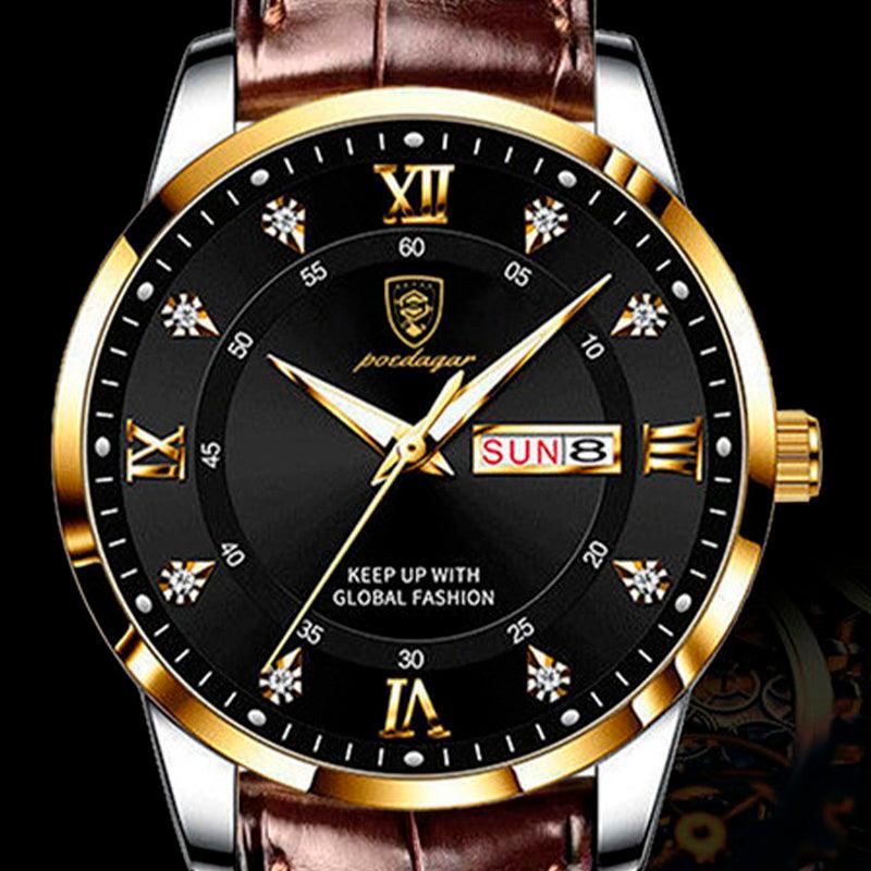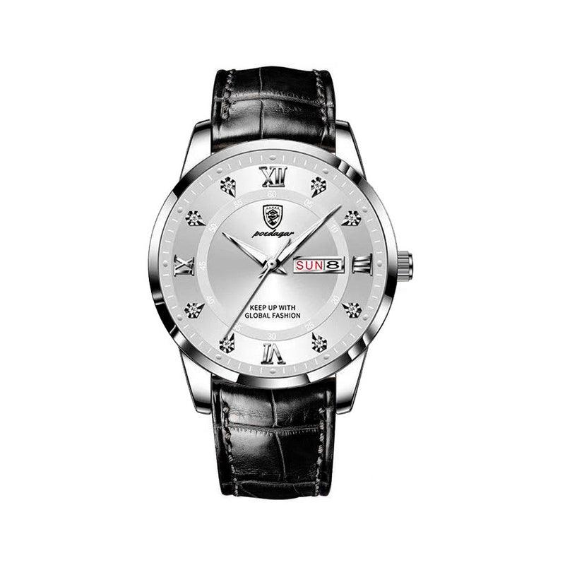 - Pulseira: Couro legítimo, proporcionando conforto e estilo.