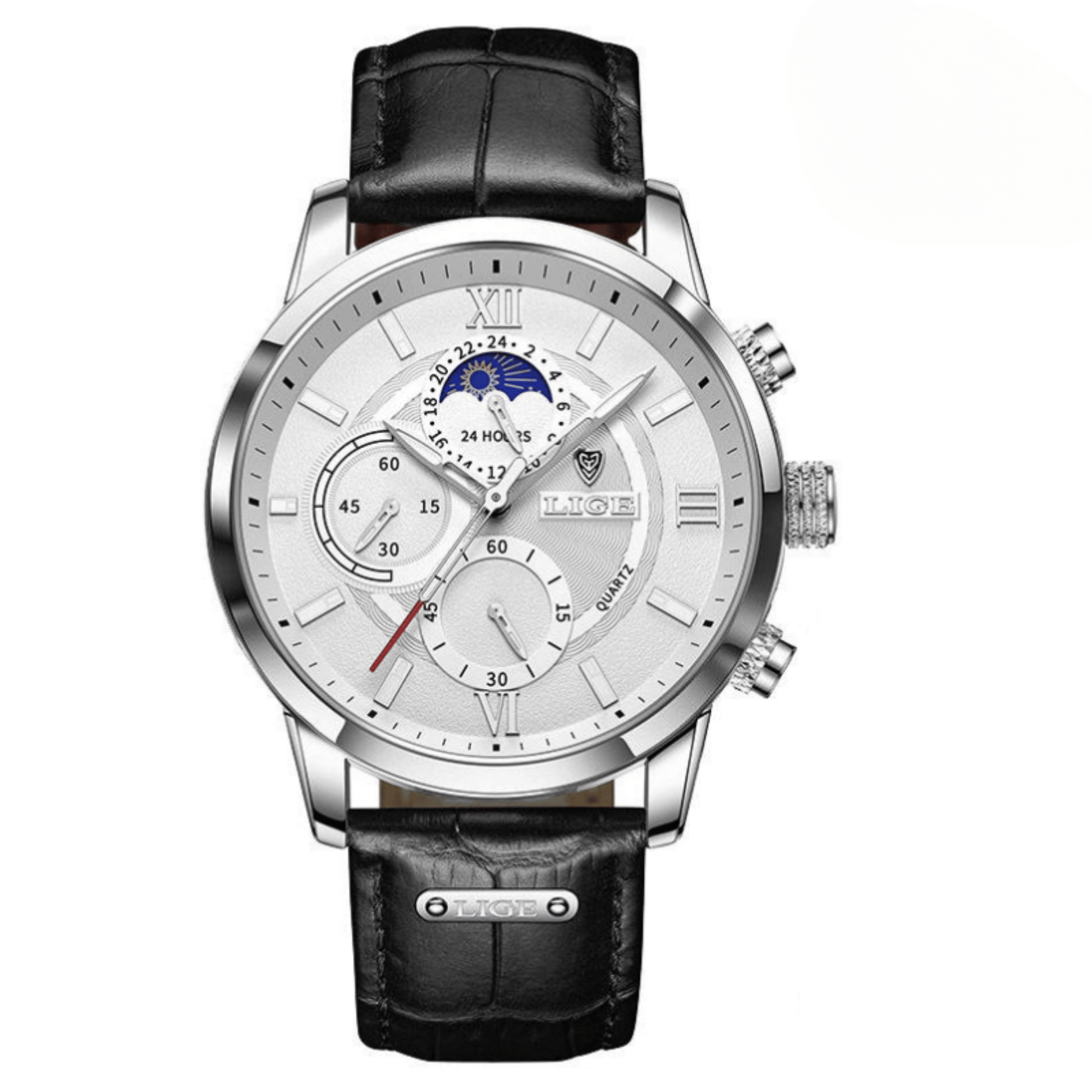 - Pulseira: Aço inoxidável luxuoso ou couro legítimo macio, oferecendo o equilíbrio perfeito entre conforto e elegância.