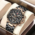 - Movimento: Quartzo de alta precisão, garantindo confiabilidade.