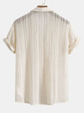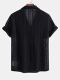 - Short-sleeve open-weave shirt, relaxed collar and soft drape