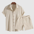 Crafted in a lightweight textured fabric, the Riviera Lounge Set blends effortless elegance with practical comfort. The short-sleeve shirt features a timeless turn-down collar and polished button-up front, while the matching drawstring shorts offer a relaxed fit with discreet side pockets. Perfect for seaside mornings, rooftop lunches, or quiet weekends at home — this set was designed for men who understand that true luxury is subtle.